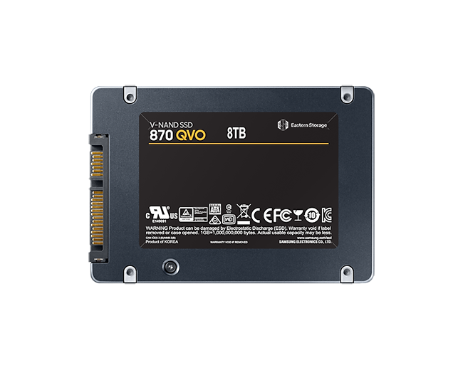 870 QVO 可提供 1TB、2TB、4TB 和 8TB 等不同容量选择。